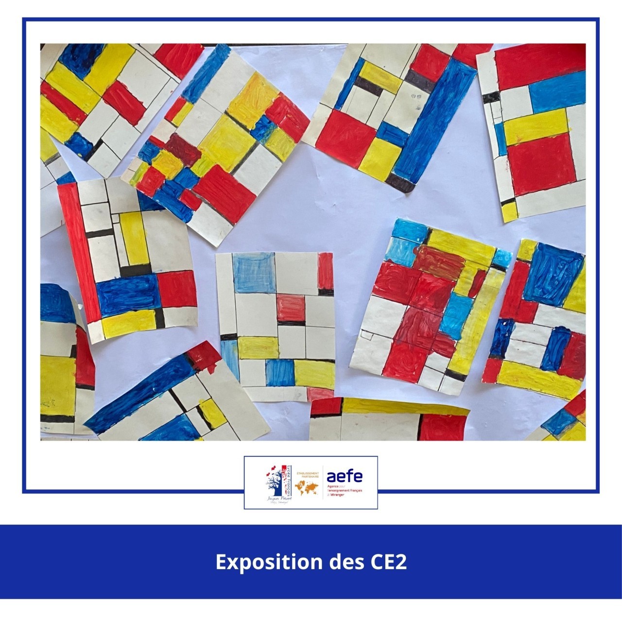 Dans le cadre de l’enseignement EMILE (arts plastiques en anglais), ils ont étudié l’œuvre de Piet Mondrian et son univers abstrait fait de lignes orthogonales et de couleurs primaires.