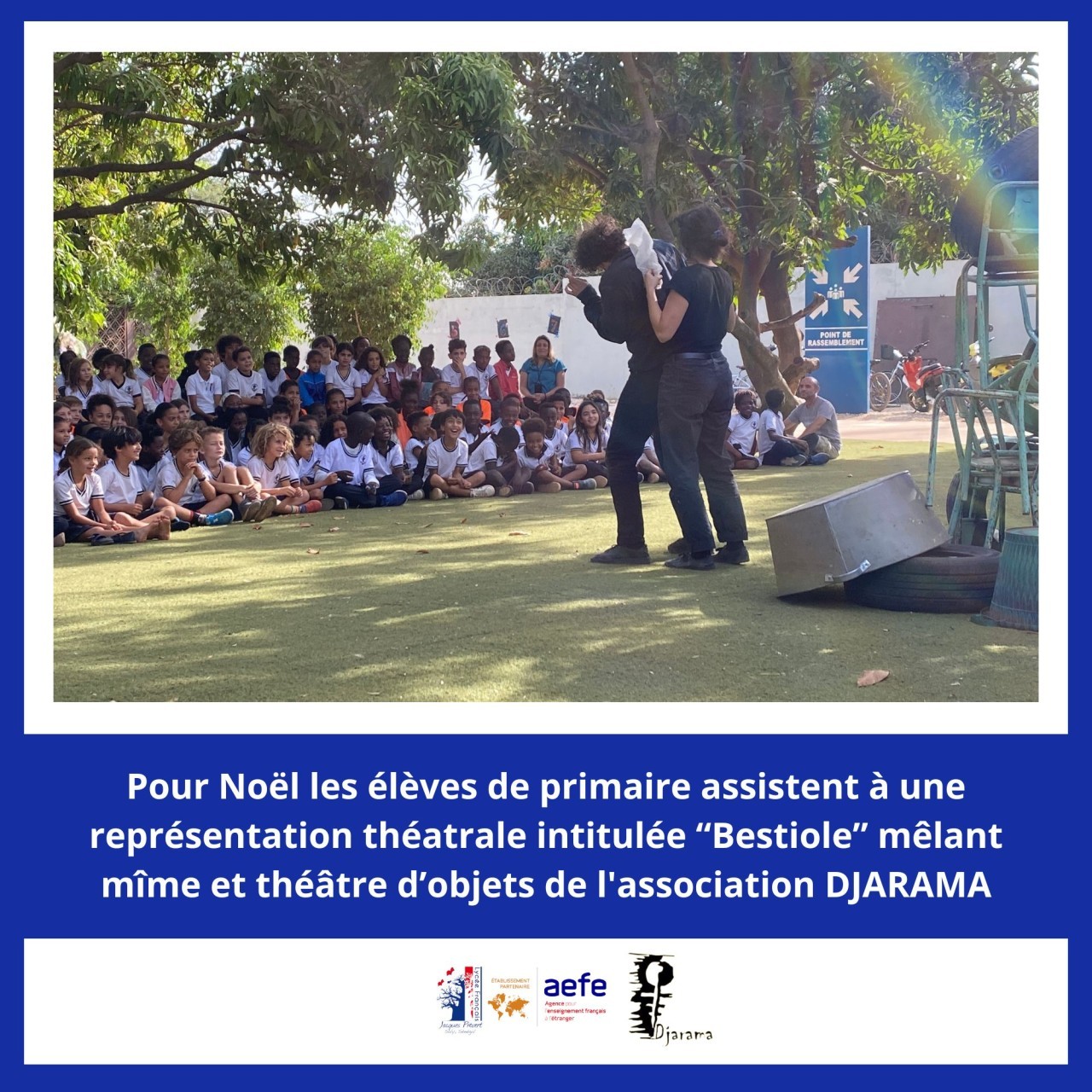 L’école primaire s’est mise aux couleurs des fêtes ce lundi 16 décembre avec le spectacle "Bestiole", proposé par Olivier Guillochon de l’association DJARAMA. 🎭