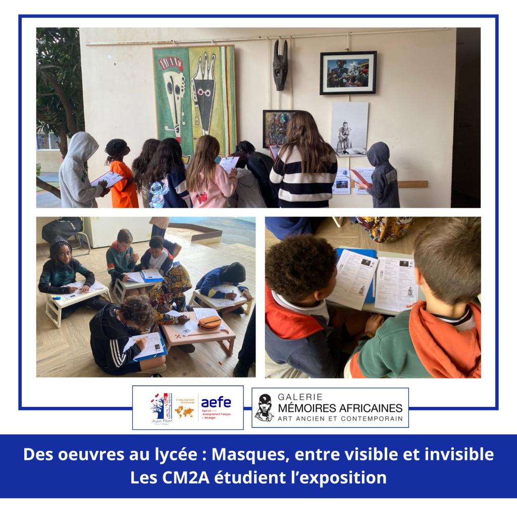 Pour cette nouvelle période, le lycée français Jacques Prévert propose une exposition d’œuvres d’art dans le hall du lycée, invitant élèves, personnels et visiteurs à découvrir et interroger la figure du masque à travers différentes formes artistiques.