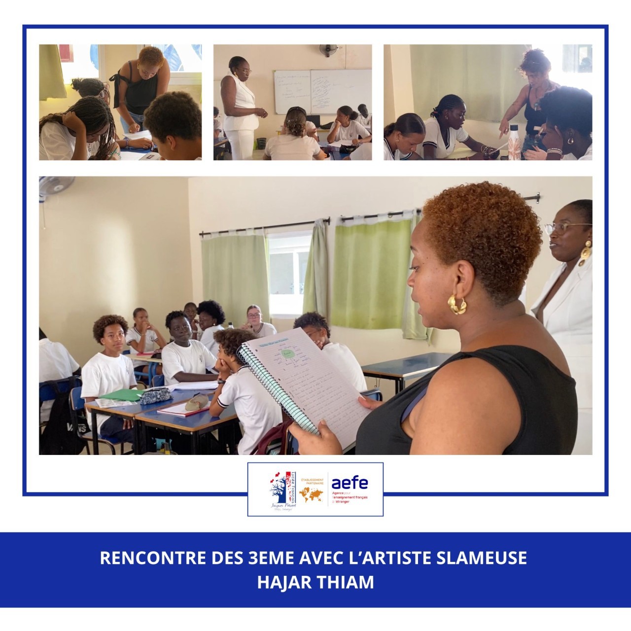 Dans le cadre de leur Parcours d’éducation artistique et culturelle et du Parcours Avenir, les élèves de 3e ont eu la chance d’échanger et d’écrire aux côtés de l’artiste Hajar Thiam.