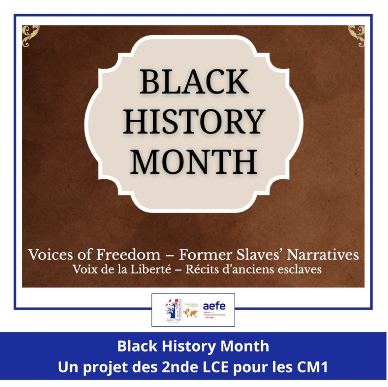 Après avoir étudié des récits autobiographiques d’anciens esclaves afro-américains des XVIIIᵉ et XIXᵉ siècles, les élèves ont incarné ces figures historiques lors d’une restitution orale en anglais, en lisant à la première personne des extraits de ces témoignages.